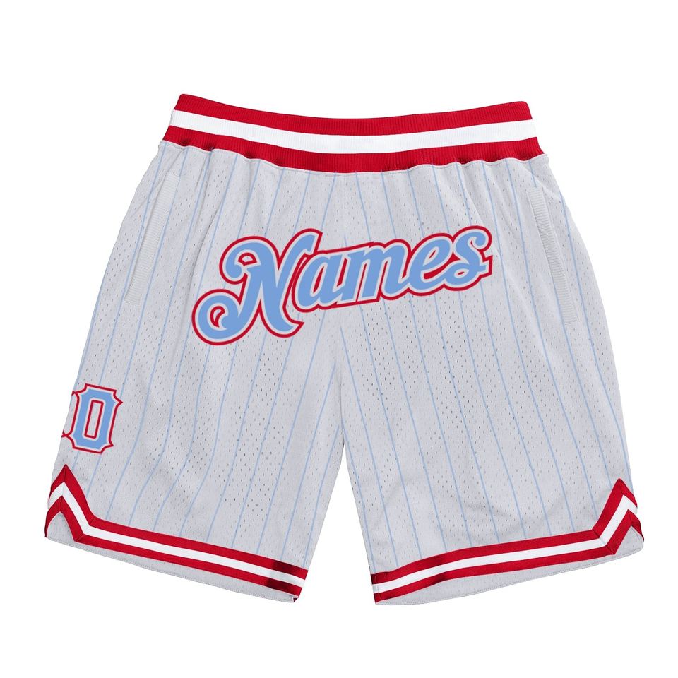 Industrie Direct Engro Sportswear Pantalones cortos de baloncesto Custom White Light Blue Pinstripe Light Blue-Red Pantalones cortos de baloncesto auténticos