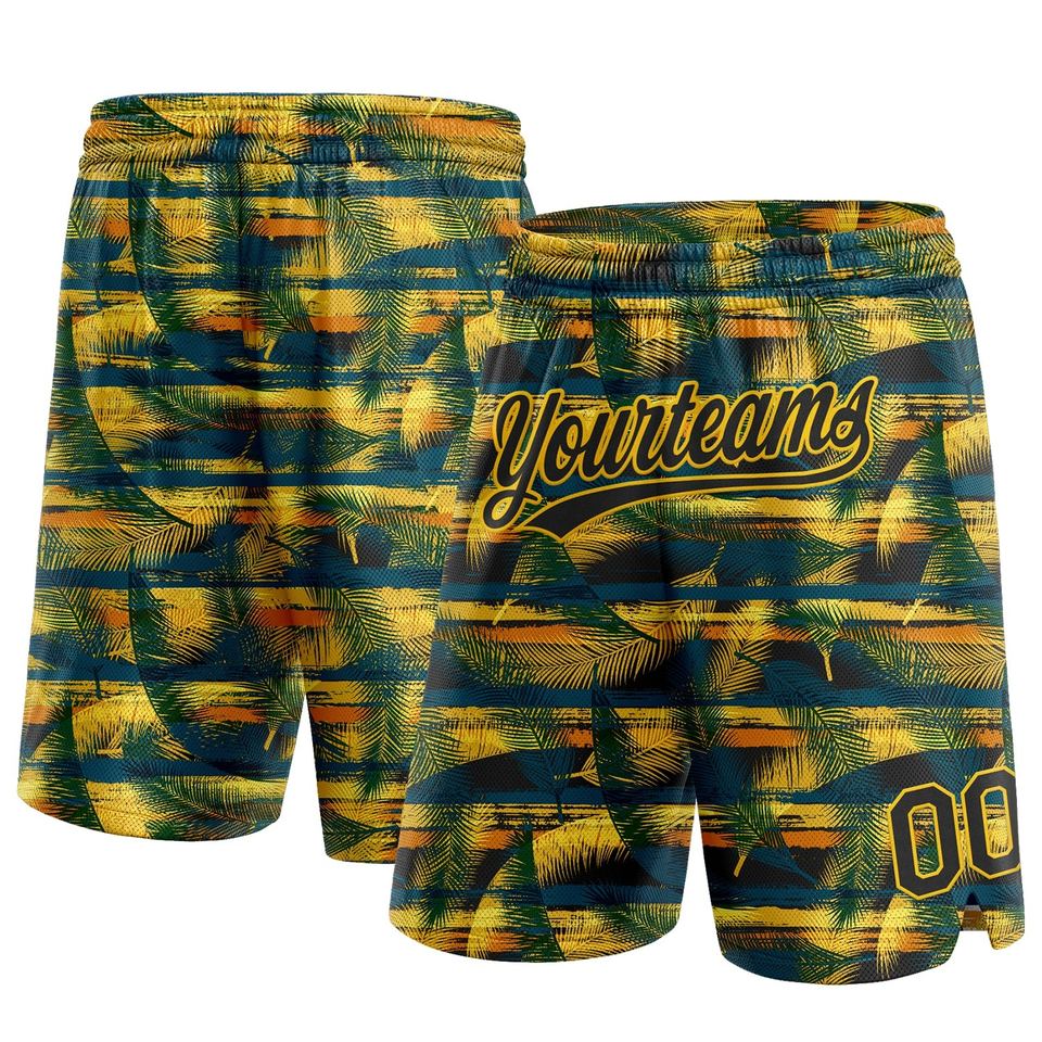 Pantalones cortos de baloncesto verde medianoche personalizados 100% poliéster con hojas de palma de Hawaii 3D-Direct Industrie Direct Engro Sportswear