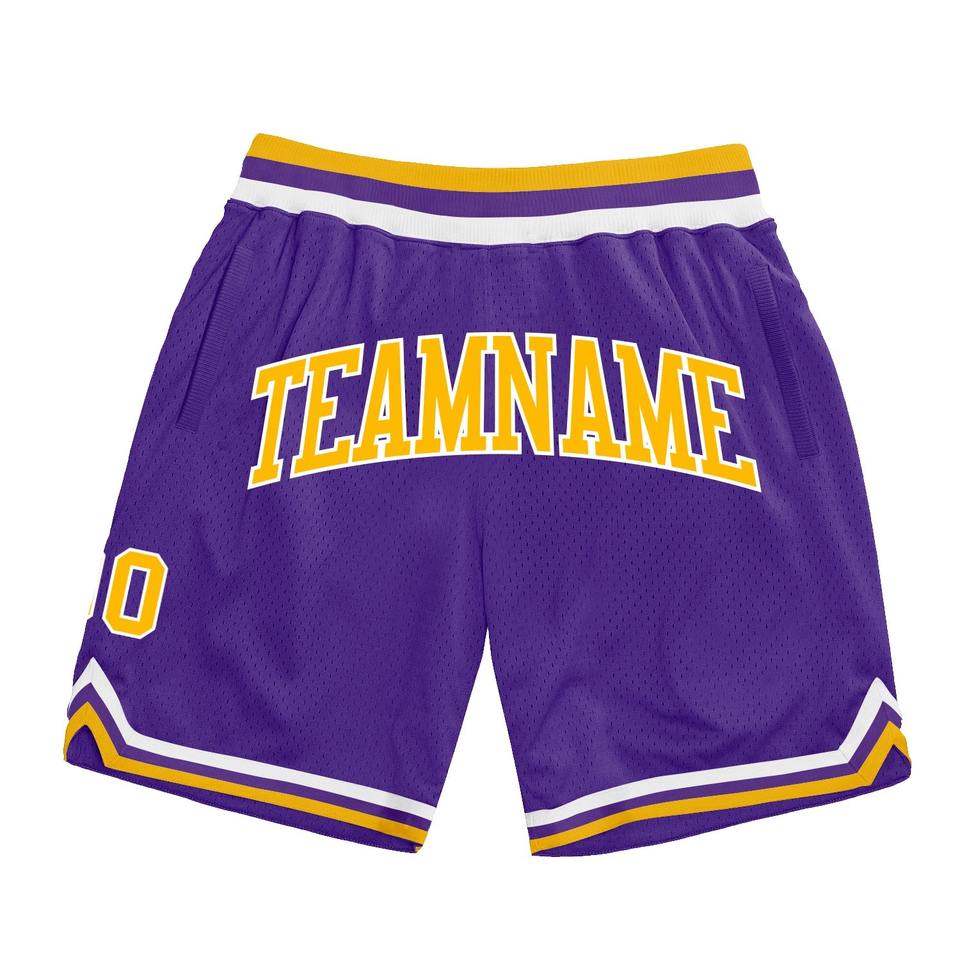 Industrie Direct Engro Sportswear Cómodo personalizado Púrpura Oro-Blanco Auténticos pantalones cortos de baloncesto de retroceso