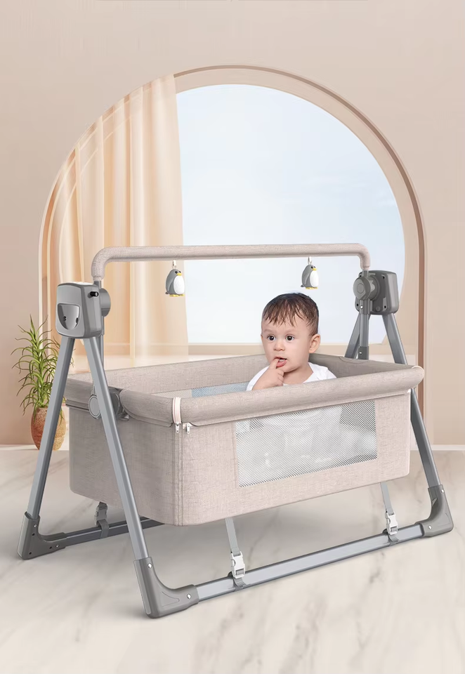 Cuna Mecedora Eléctrica Musical 3 en 1 para Bebés, Portátil, de Aluminio, con Juguete, Cuna de Lujo con Columpio para Niños
