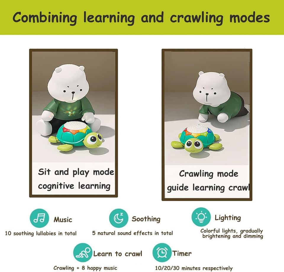 Función: bebé juguete de la tortuga de proyección:Guía bebé para aprender a gatear, proyección, música, canción de cuna, luces