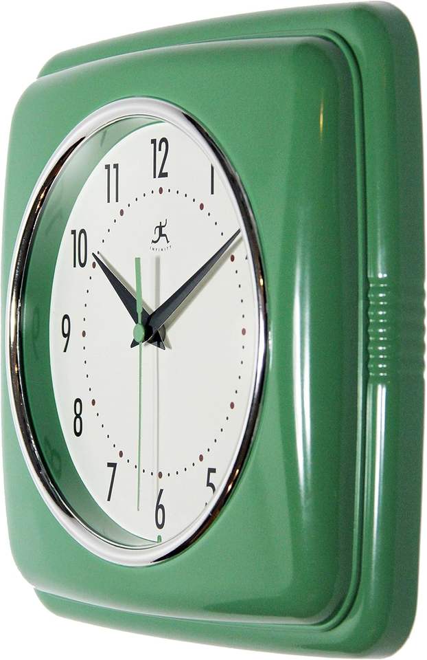 Infinity Instruments Reloj de pared Retro verde de 9 pulgadas Mid Century Modern Square Silent Quartz Sweep Banderas promocionales Banners