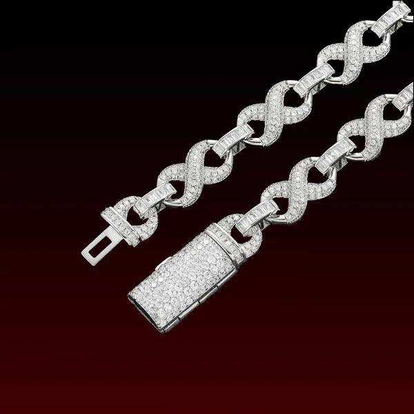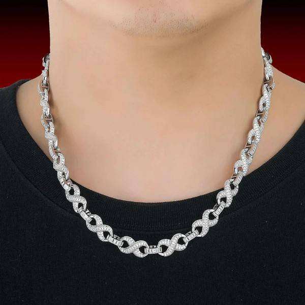 Collar de Lujo Infinity para Hombre, Chapado en Oro y Rodio sobre Plata de Ley, con Eslabones Baguette y Moissanita, Ideal para Fiestas