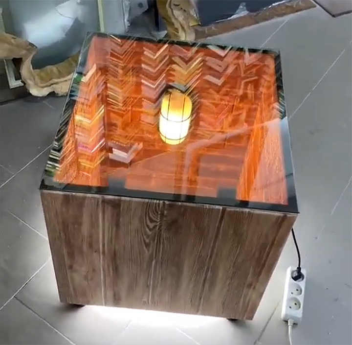 Mesa de Centro con Espejo Infinito y Túnel de Luz LED, Cubo Reflectante Personalizable para Decoración de Sala de Estar Moderna