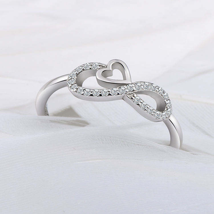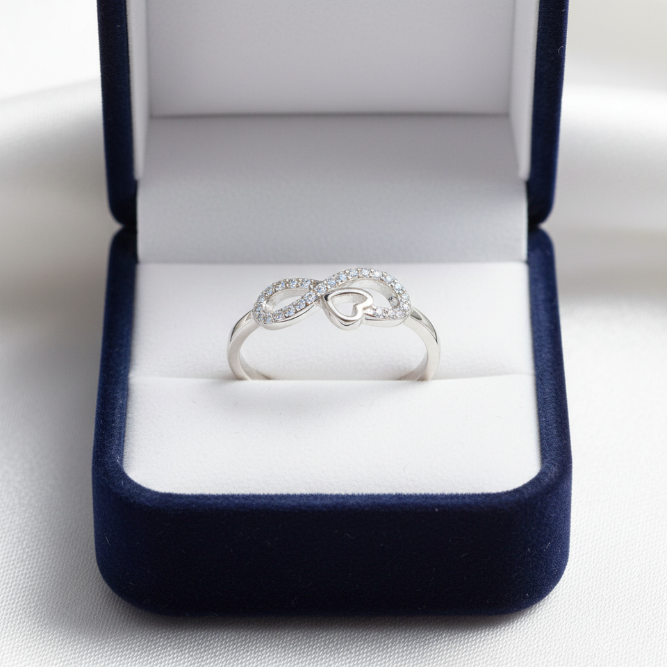 Anillo de Compromiso de Plata de Ley 925 con Símbolo de Infinito, Corazón y Circonita Cúbica, Regalo de Aniversario o San Valentín