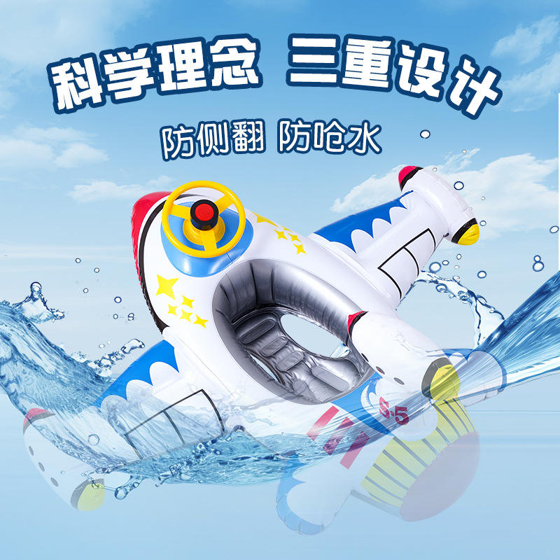 Flotador Inflable de Avión para Niños, 80x65cm, Diseño de Dibujos Animados, Juguete Acuático con Volante y Bocina