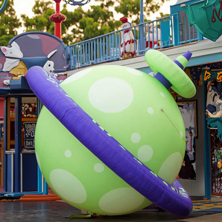 Planeta inflable con temática alienígena para promoción 360 Fábrica-Publicidad personalizada inflable