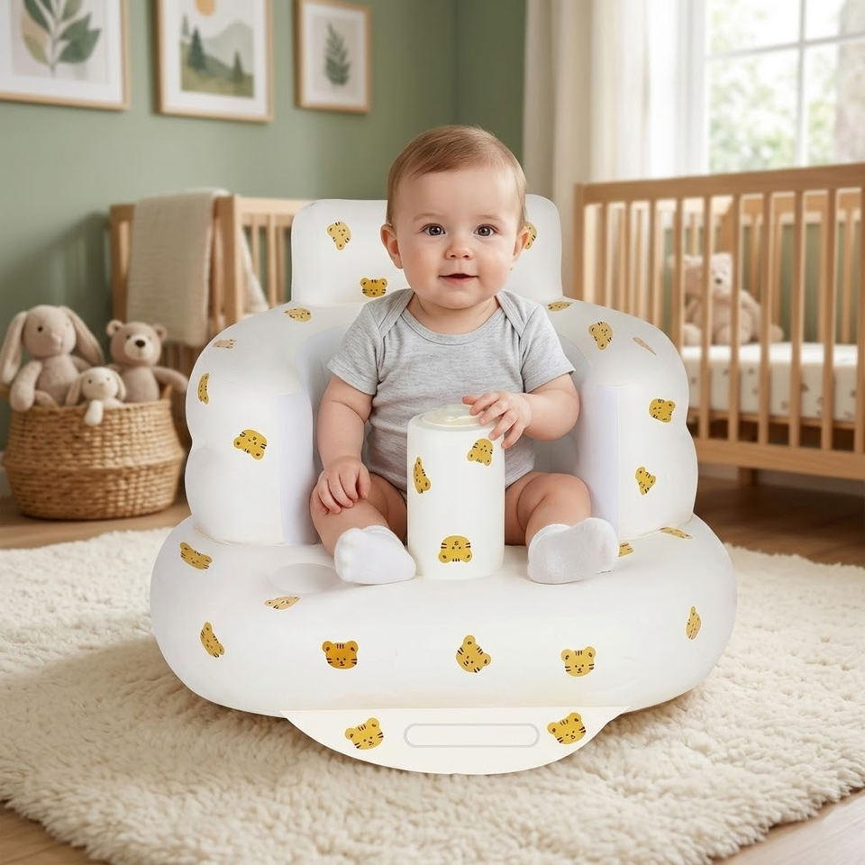 Sofá Inflable para Bebés de 3+ Meses con Barrera y Bomba de Aire Integrada para Dormitorio, Sala de Estar, Viajes, Camping, Diseño de Tigre