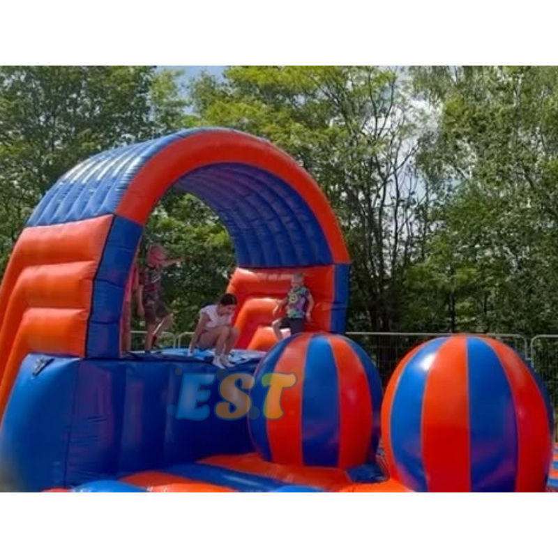 Carrera de obstáculos de bola inflable con tobogán para niños, juegos deportivos inflables al aire libre, Bola de demolición, salto de guerreros para adultos