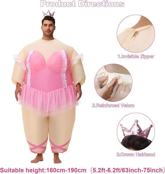 Disfraces de ballet inflables para adultos, disfraz divertido de soplar con corona, diadema, fiesta de Halloween, juego de rol
