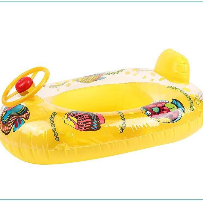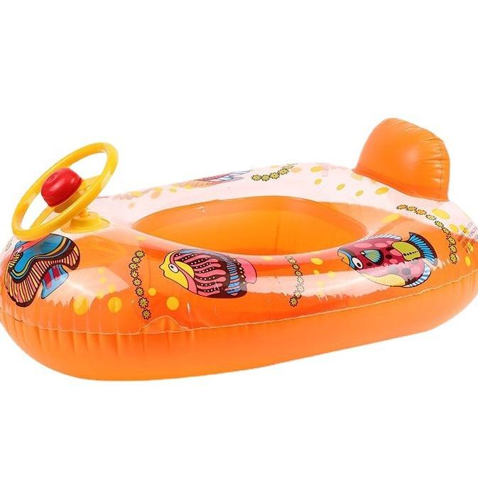 Bote inflable para niños con volante y bocina, 80x65 cm, diseño de dibujos animados, anillo de natación, juguete acuático