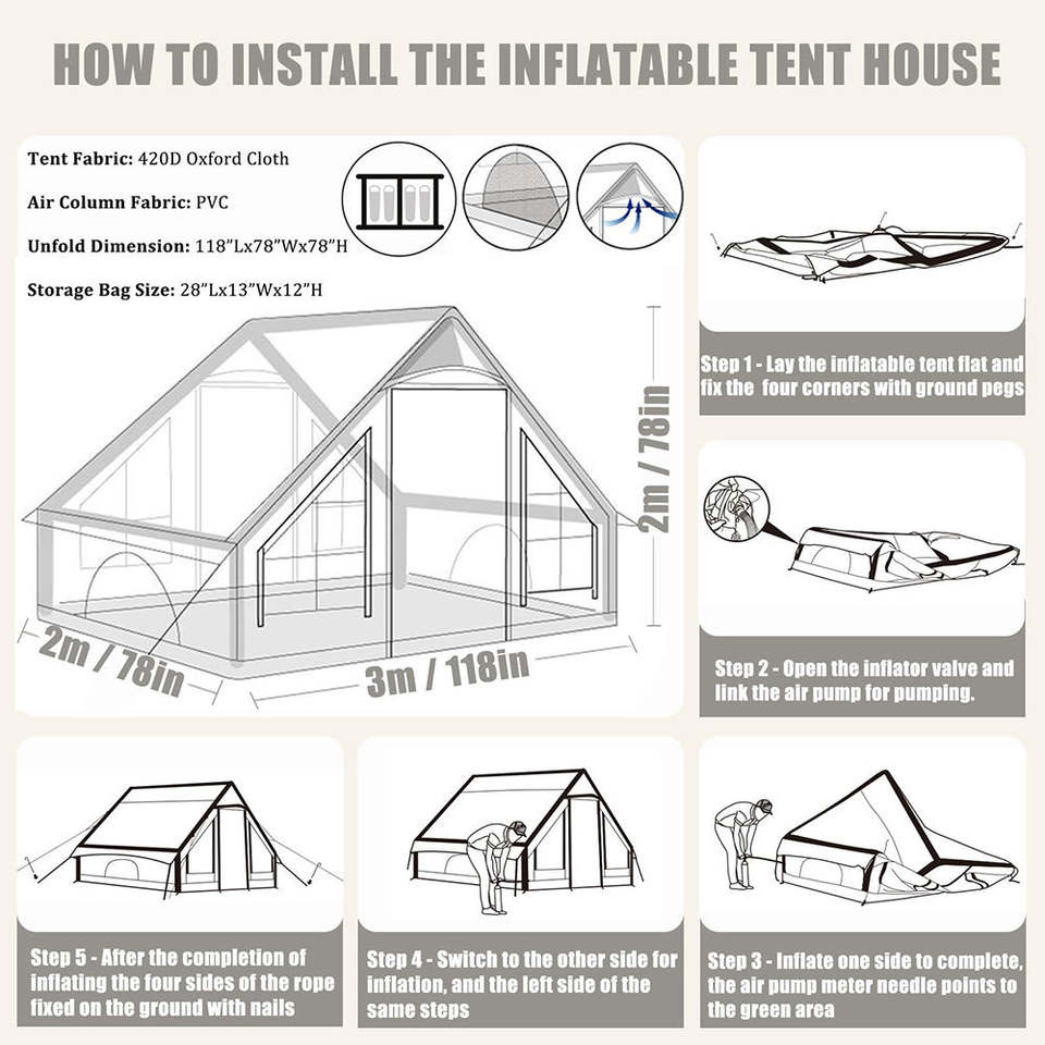 Carpa Inflable para Camping con Bomba Manual, Fácil de Instalar, Impermeable, Resistente a los Rayos UV, Carpa Tipo Cabaña Oxford para las Cuatro Estaciones