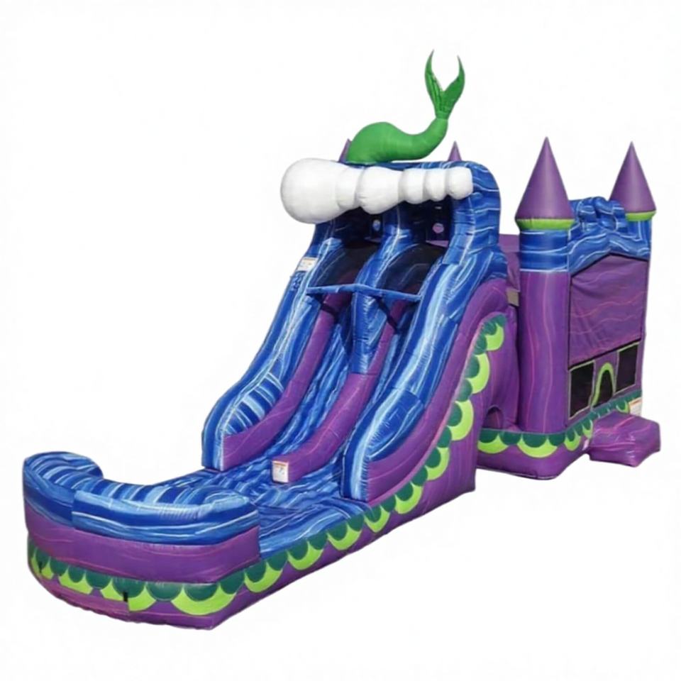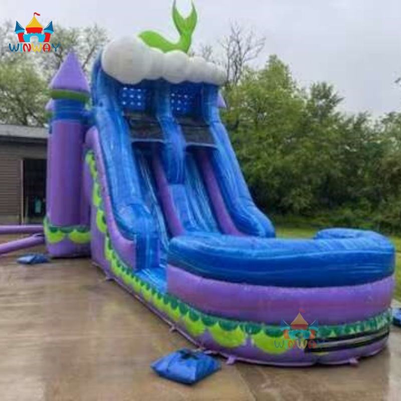 Castillo Inflable con Tobogán Acuático de Doble Carril, Alquiler de Casa de Brinco Combinada, Material de PVC, Tamaño 3x7M, Uso Comercial para Diversión