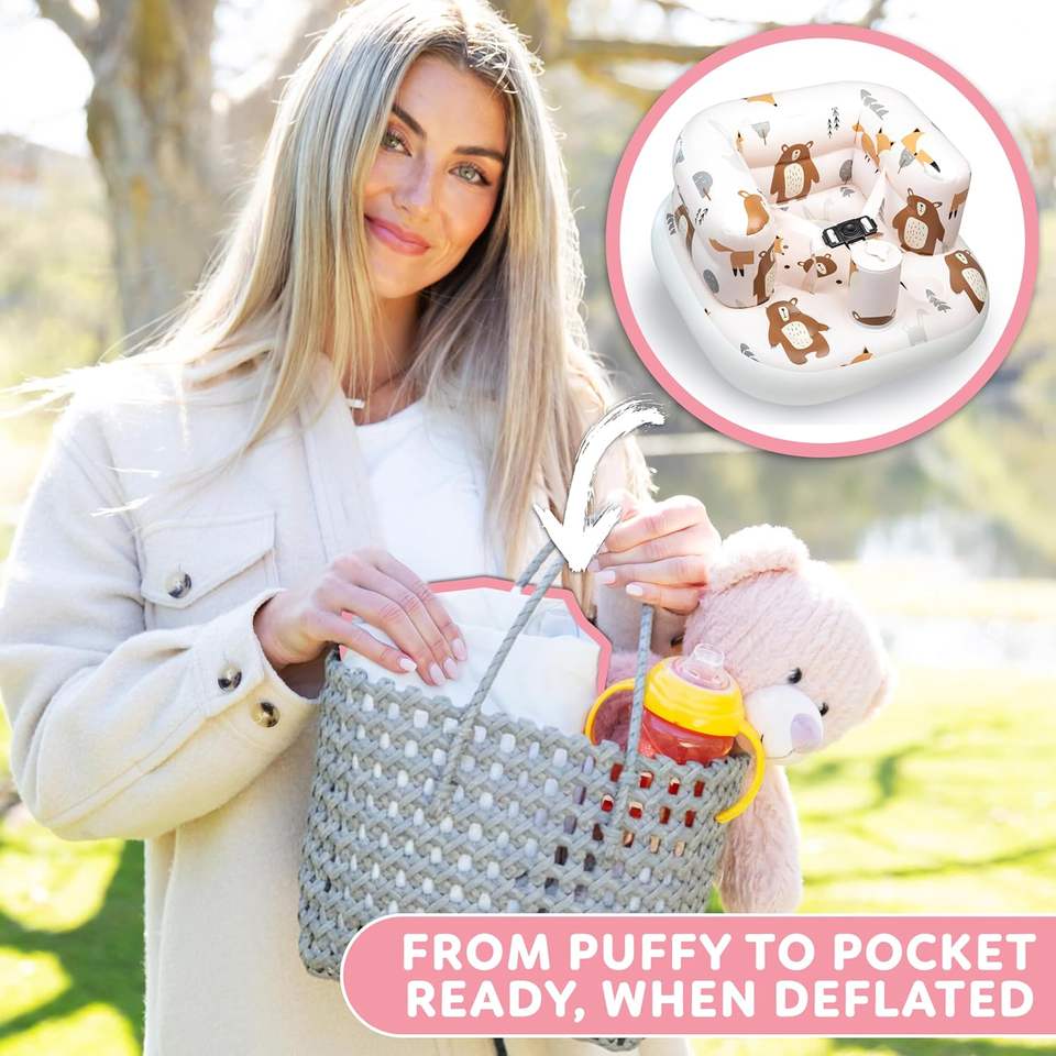Silla inflable para bebé con arnés de seguridad, bomba incorporada y base antideslizante – Asiento para bebés de 3 a 36 meses, portátil