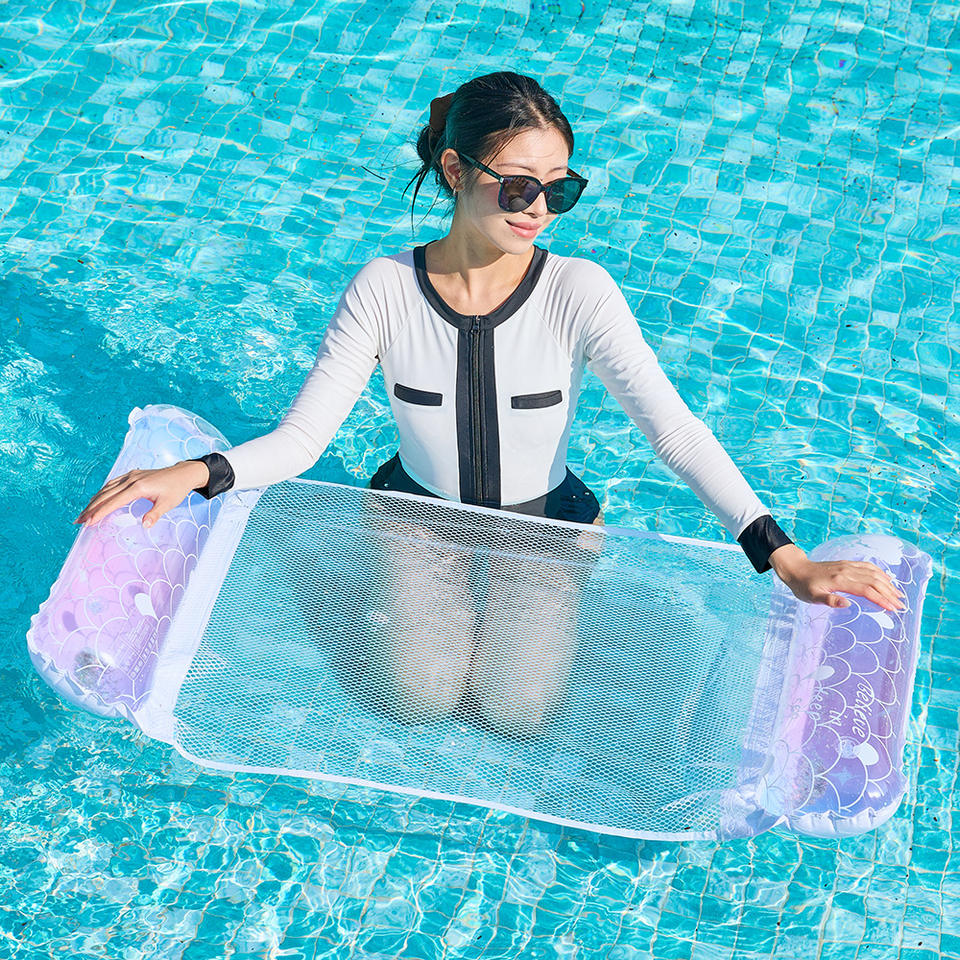 Cama Flotante Inflable para Adultos, Diseño de Sirena, Malla de PVC Reforzada, Flotador para Piscina