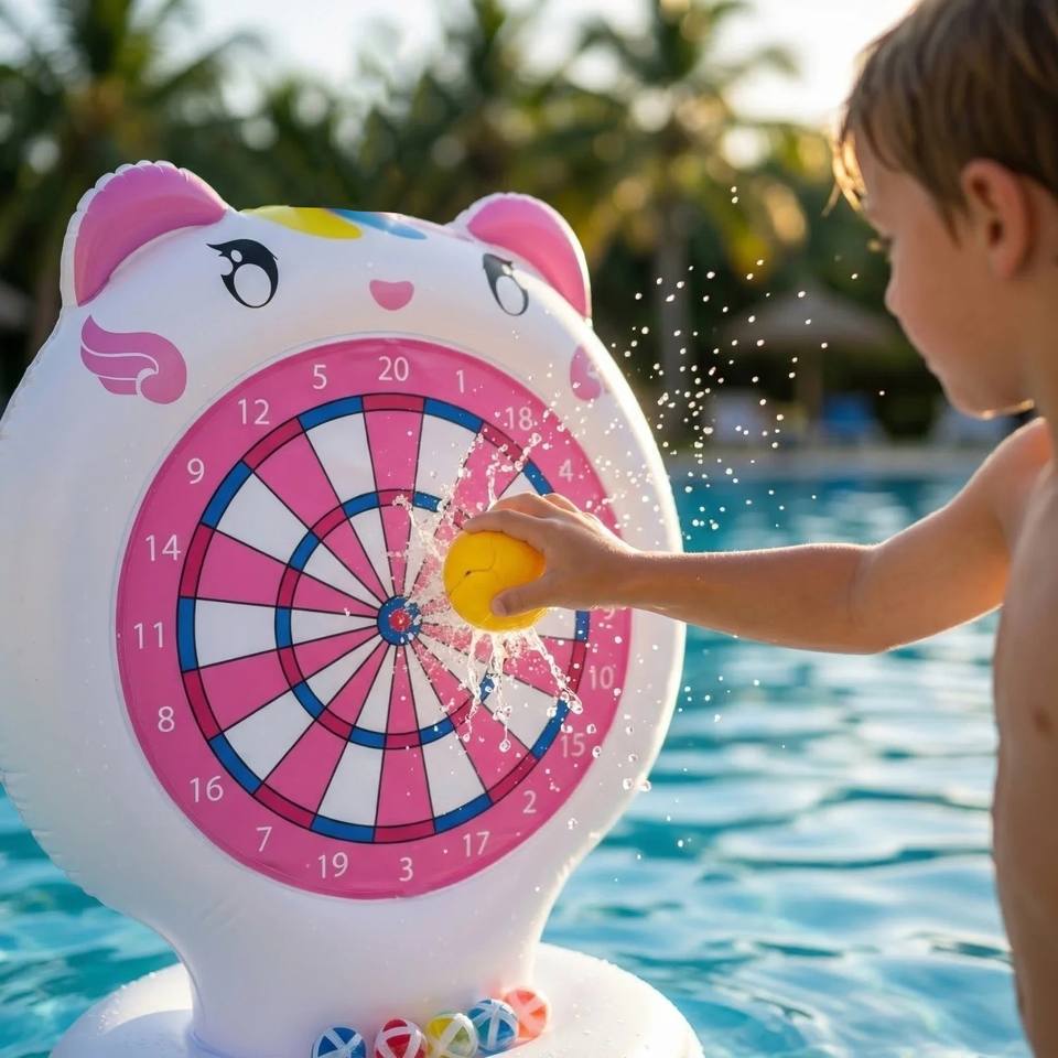Juego de Dardos Flotante Inflable, Tablero de Dardos Gigante de 51 Pulgadas con Diseño de Gato para Niños, Juguete para Fiestas en Piscina, Interior y Exterior