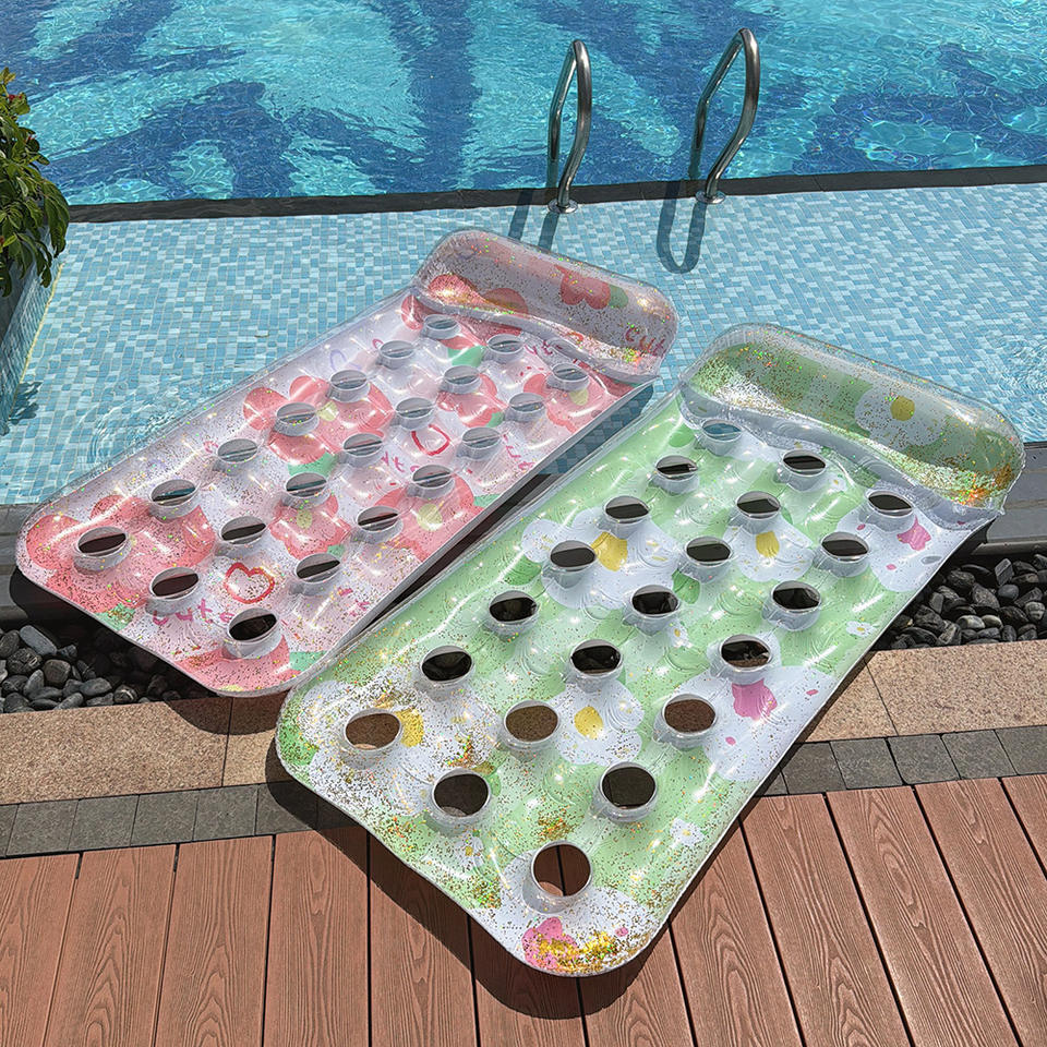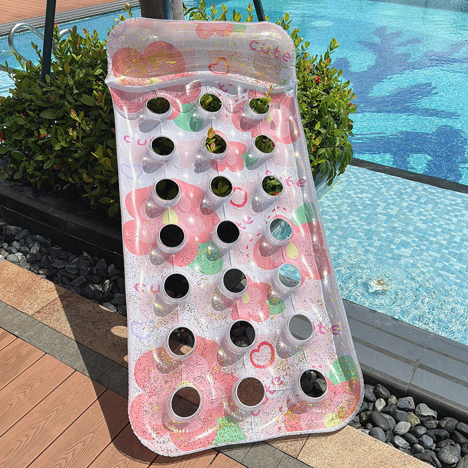Silla Flotante Inflable con Orificios para Flores, para Piscina, Adultos, Asiento Flotante de PVC, Diseño con Patrón Verde