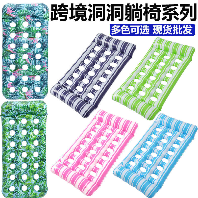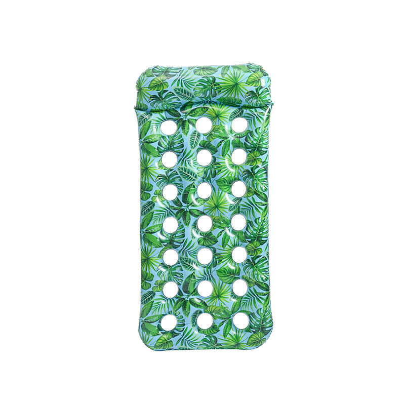 Tumbona Flotante Inflable con Estampado de Hojas y Perforaciones para Uso en Piscinas o Lagos