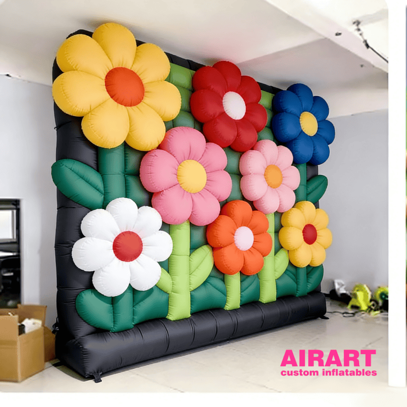 Pared de fondo inflable con flores para fotomatón y rincón de selfies