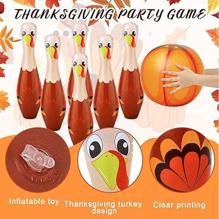 Pelota de Bolos Inflable para Pies, Juguete Inflable, Diseño de Pavo de Acción de Gracias para Niños y Niñas