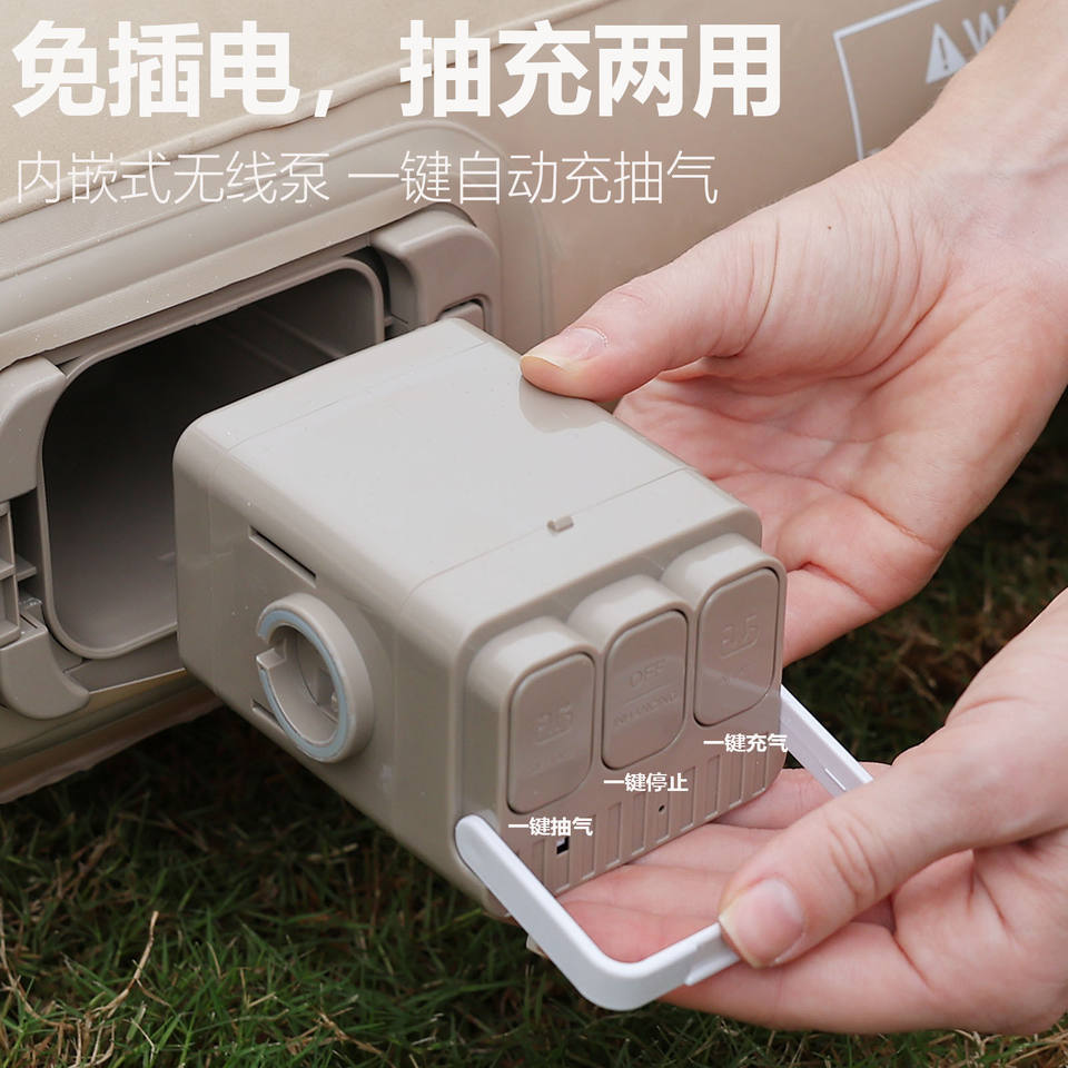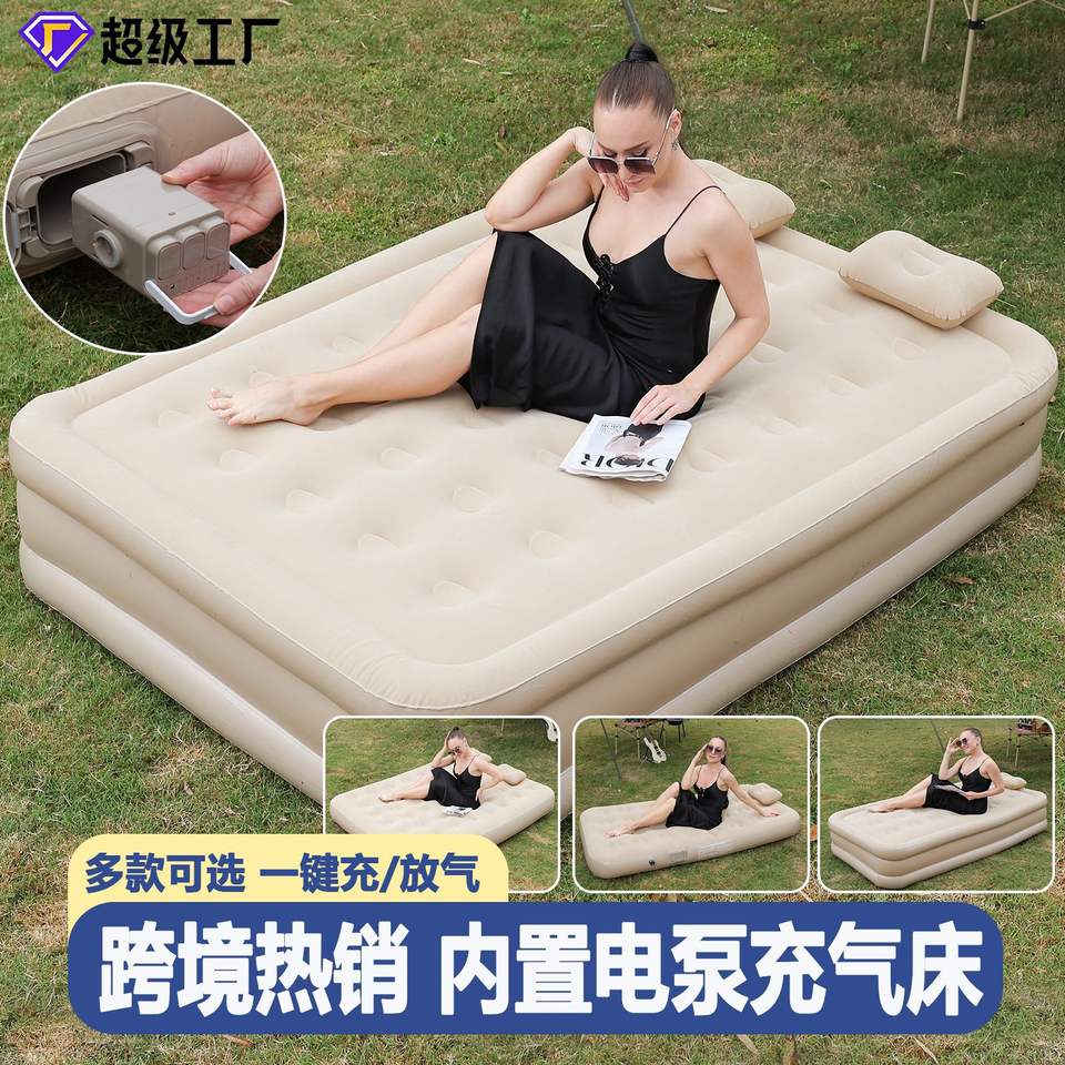 Colchón beige con bomba integrada.