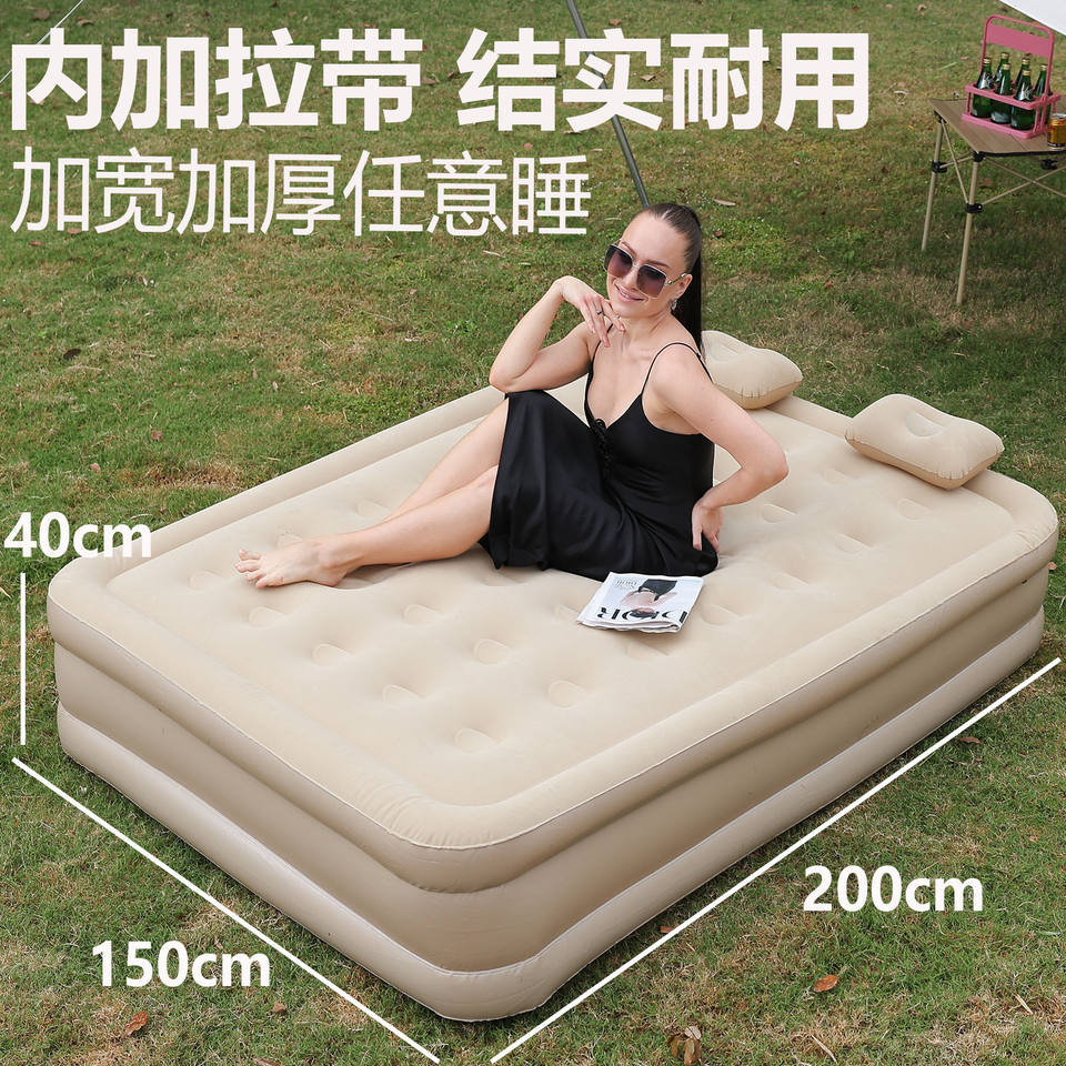 Colchón Inflable 200x150x45cm con Bomba Integrada, Cama de Aire Beige, Tamaño Individual/Doble, para Uso en Exteriores
