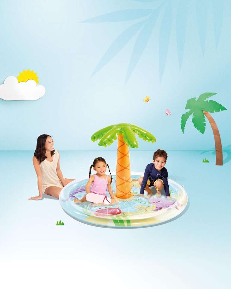 Alfombrilla de Juego Acuática Inflable con Forma de Palmera MAKE WAVES, Material de PVC, Plegable, Portátil, 68x41 Pulgadas, Alfombrilla de Juego Acuática para Niños, Rociador de Agua para Exteriores