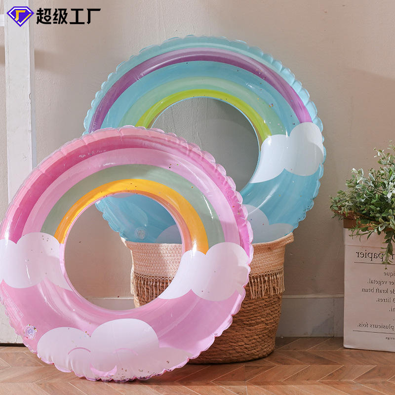 Flotador Inflable con Lentejuelas, Diseño de Nube Arcoíris, para Niños, Piscina