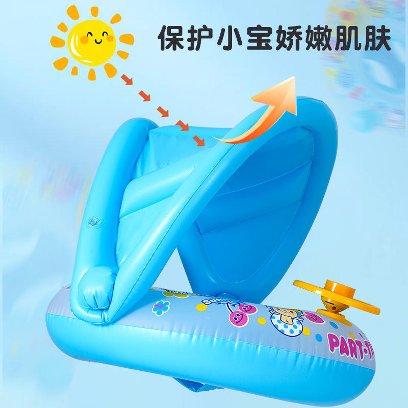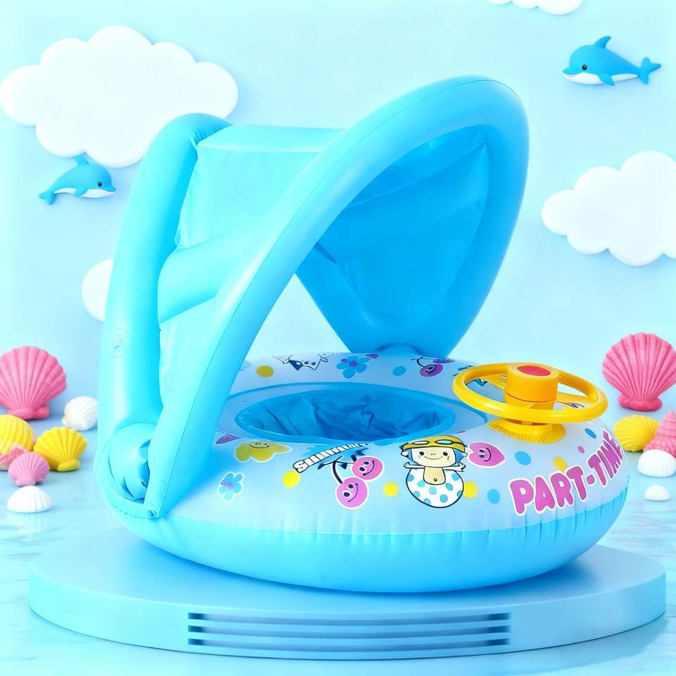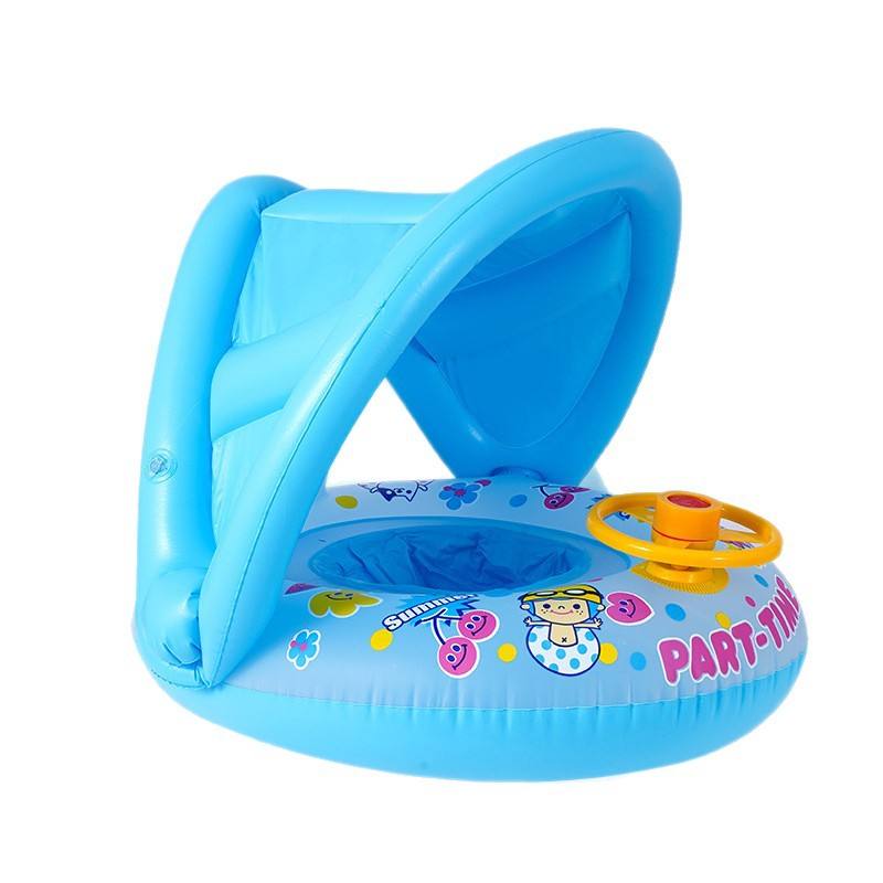 Flotador Inflable con Sombrilla y Volante para Niños, Diseño de Dibujos Animados, 63x53x44cm, Uso en Exteriores