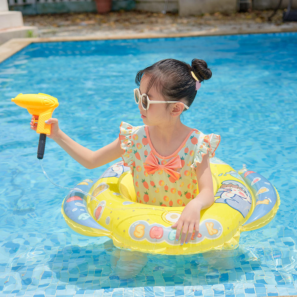 Anillo de natación inflable con pistola de agua para niños, diseño de dibujos animados para jugar en la piscina o parque acuático, PVC engrosado de 0.18 mm