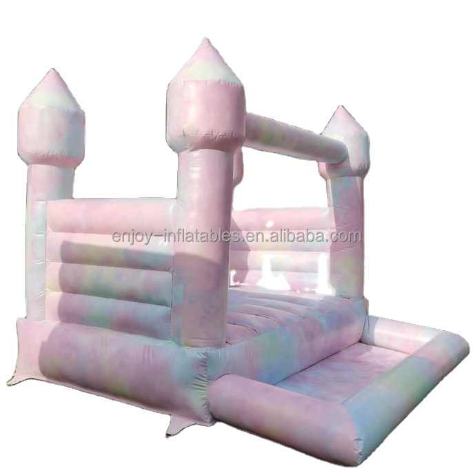 Mini castillo hinchable para niños, saltador con tinte de corbata, pastel suave, con piscina, fiesta de alquiler