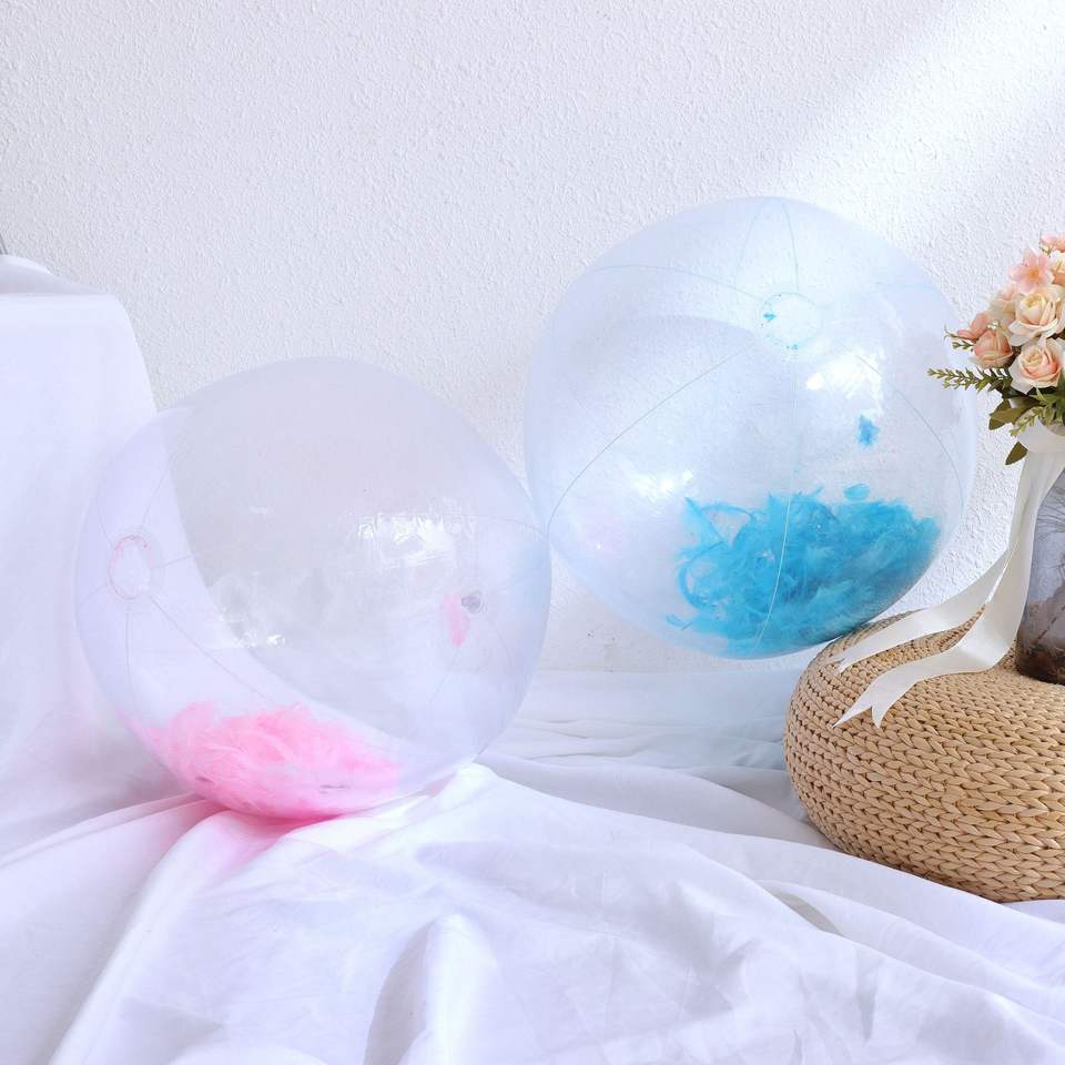 Pelota de playa inflable transparente de plumas, pelota de PVC, juguete acuático para interiores y exteriores, unisex, de 8 a 13 años