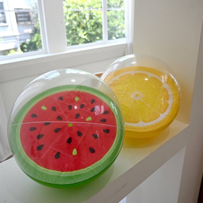 Pelota de playa inflable transparente de PVC con forma de sandía y limón, juguete acuático para niños, para jugar al aire libre