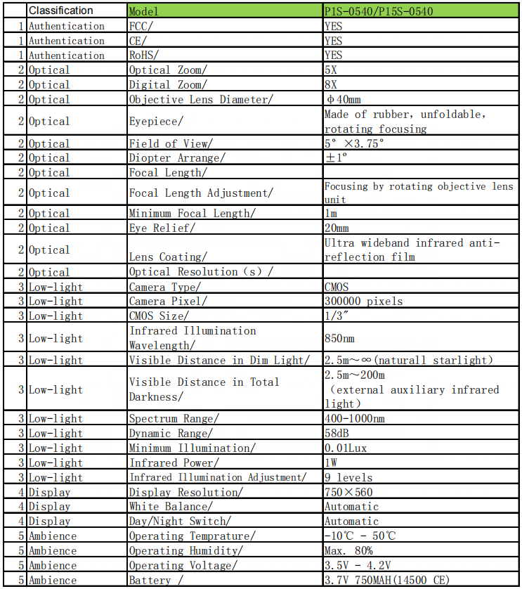 Monocular Digital de Visión Nocturna con Iluminación Auxiliar Infrarroja 5x40
