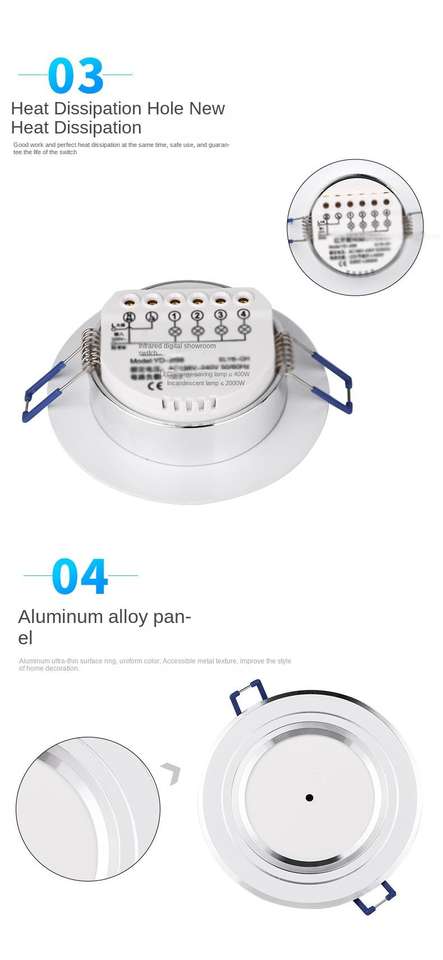 Control Remoto Infrarrojo de Cuatro Vías Tipo 86 220V de Alta Potencia ABS IP27 para Iluminación de Paredes, Tiendas, Salas de Exposiciones, Inteligente