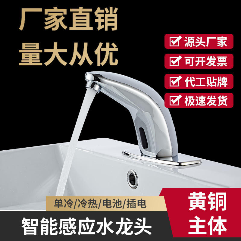 Grifo con Sensor Infrarrojo de Latón, de un Solo Orificio, Montado en el Encimera, sin Contacto, con Control de Agua Inductivo
