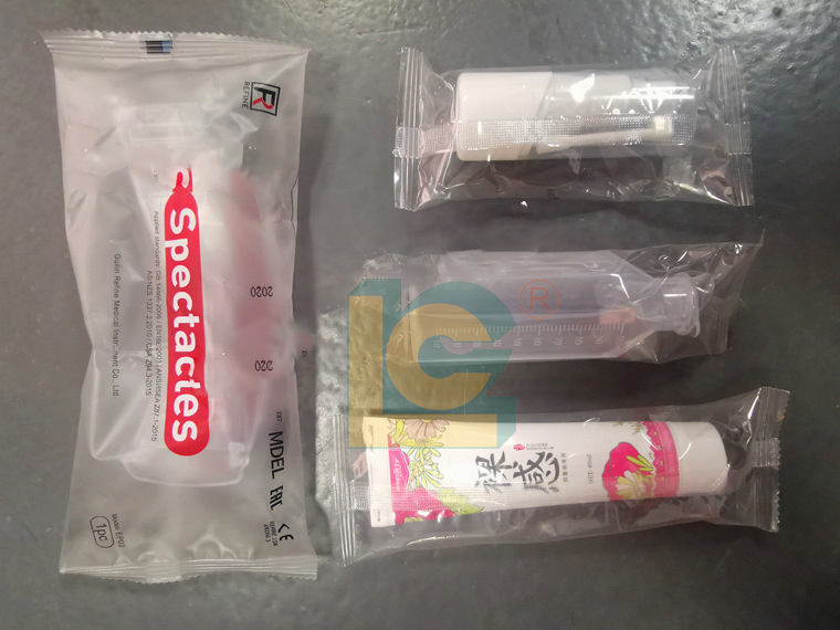 Tubo de botella de infusión Máquina de embalaje horizontal Máquina de sellado de bolsas Envoltura de flujo con aguja de transfusión de gas Tipo de almohada