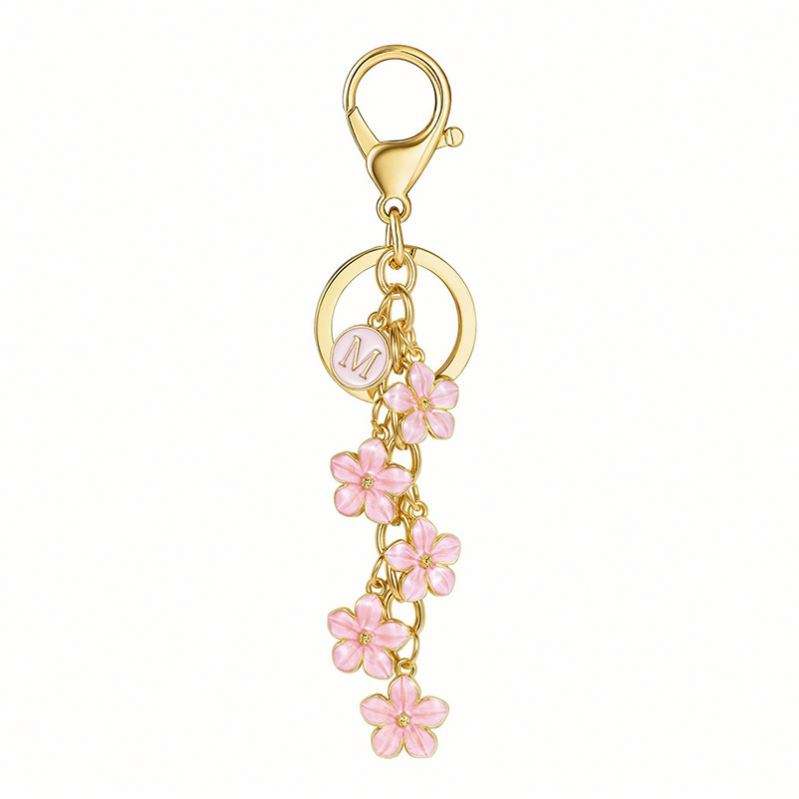 Llavero con Letra Inicial y Dijes de Flores Rosas para Llaves, Bonito Llavero con Letra para Bolso o Mochila