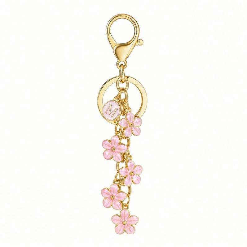 Llavero con Letra Inicial y Dijes de Flores Rosas para Llaves, Bonito Llavero con Letra para Bolso o Mochila