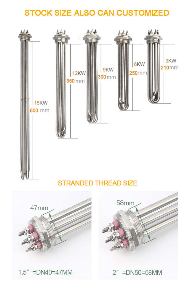 Varilla de calentamiento eléctrica tubular de inmersión en agua para aceite industrial