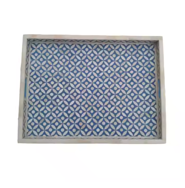 Bandeja de Servicio Personalizada con Incrustaciones, Diseño Árabe de Alta Calidad en Resina y Hueso, por Crescent Crafts