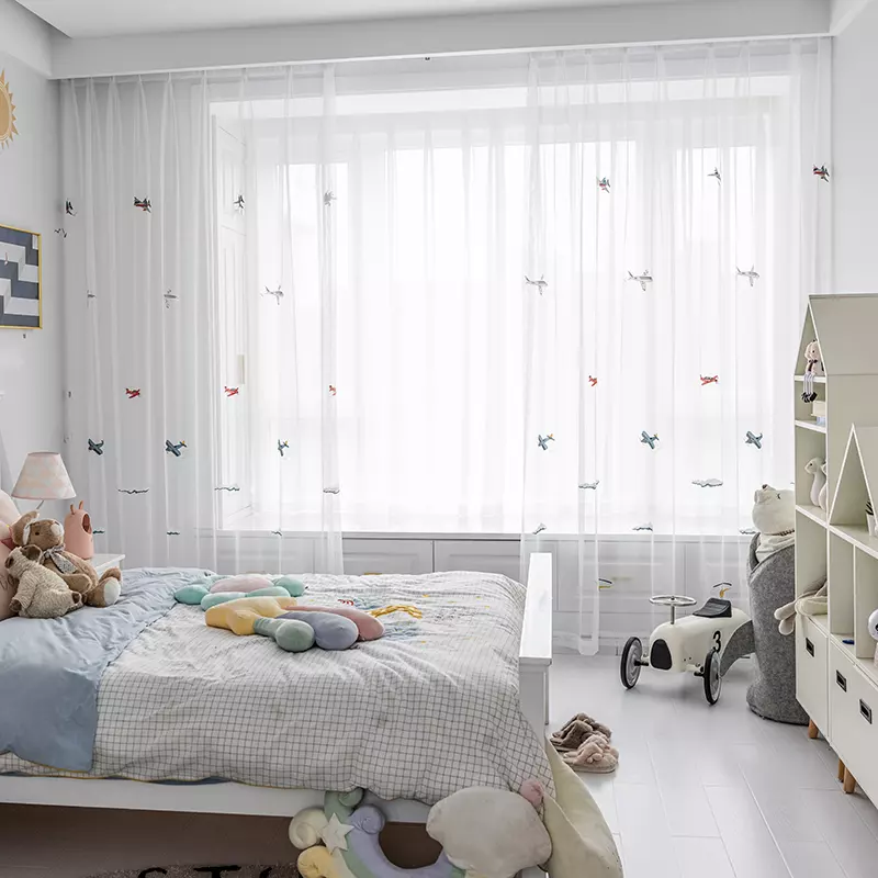 Innermor patrón personalizado dibujos animados avión bordado suave tul bebé cama puerta y ventana cortinas diseño turco cenefas