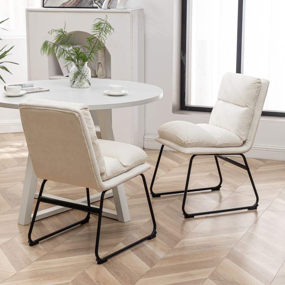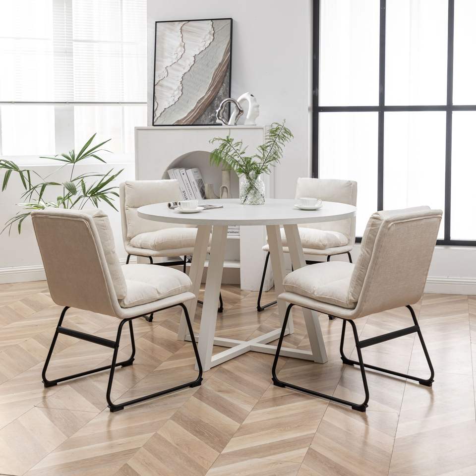 Juego de Comedor Redondo de 5 Piezas Innes, Elegante Mesa con Base de Trípode en Blanco Vainilla con 4 Sillas para Comedor