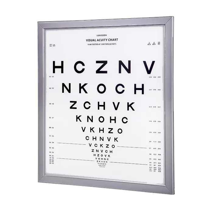 InnoVue Opto tabla ETDRS estandarizada, certificada CE e ISO, modelo LY-24C con retroiluminación LED, distancia 4 metros, 1 año — agudeza visual clínica