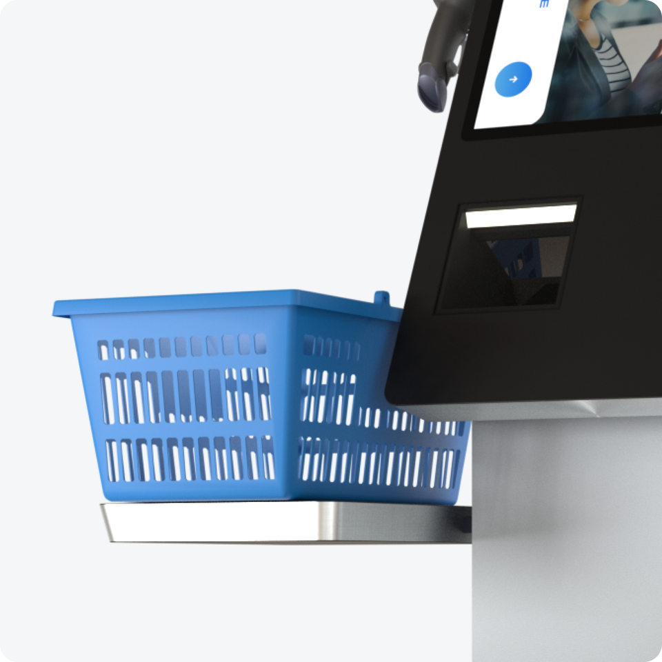 Innovador terminal de automatización minorista LR Self-Checkout con pantalla táctil Escáner de código de barras Quiosco de pago con estante de cesta