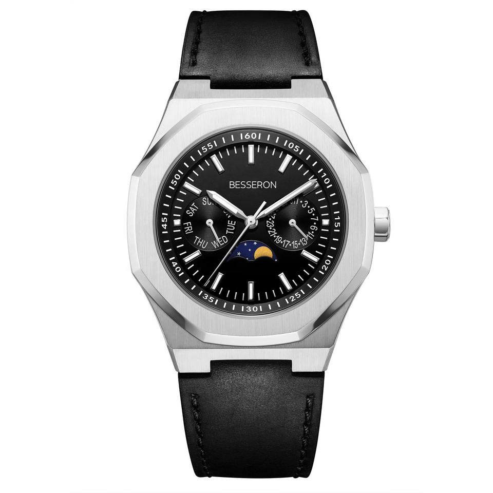 Reloj innovador OEM Moonphase para hombre, Movimiento Ciudadano, logotipo personalizable, cronógrafo de acero inoxidable, reloj de pulsera, funda para PC