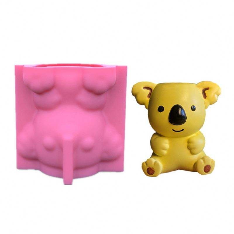 Molde de hormigón de silicona de Koala australiano de dibujos animados 3D Simple innovador para maceta, portalápices, tarro de vela