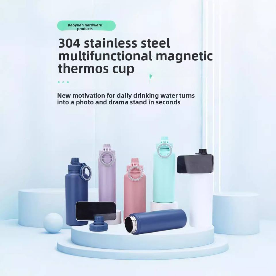Botella deportiva innovadora con aislamiento de doble pared Logotipo personalizado Opciones de 18oz y 32oz Soporte de teléfono de carga Magsafe