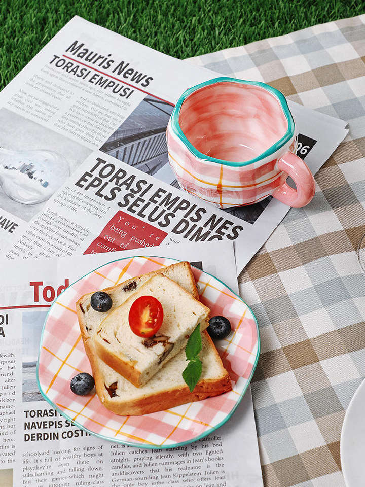 Taza de Cerámica Hecha a Mano, Irregular, de 10 oz, Taza de Café Personalizada con Platillo, Taza de Cerámica para Té de la Tarde, Taza de Gres Retro