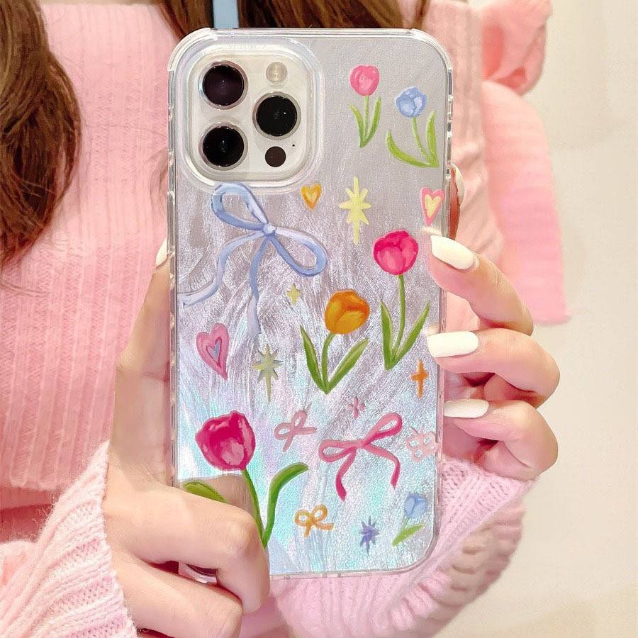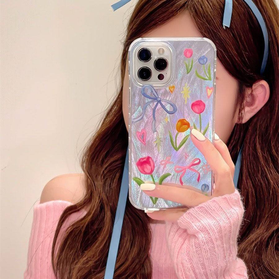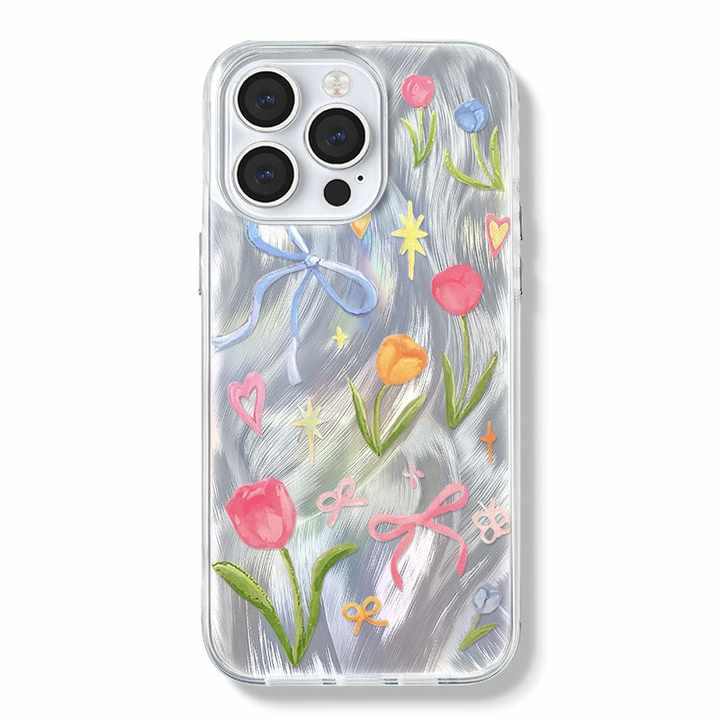 Funda de teléfono Ins con flores de colores para iPhone 16 Pro Max 17 15 14 13 12 11XS XR Max, funda de teléfono suave anticaída de gasa de plumas para personas mayores